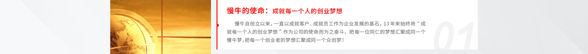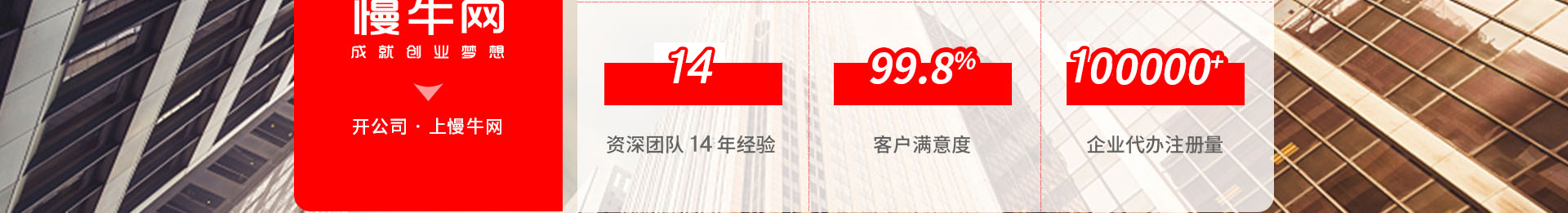 慢牛网致力于为广大企业提供:工商注册、财税代理、融资贷款咨询、知识产权、法律咨询、网站建设、微信小程序开发、品牌设计、商业装修、电脑和网络布置周边、社保代缴等200多项企业服务项目。实现线上一站式企业生态服务链,同时打通线下园区、孵化器等实体产业,助力国内中小企业完成从0到1的发展。是创业者的保姆,创业者的超市。通过不断创新, 帮助中国新一代的创业者实现创业梦想,助力中国中小企业成长壮大。